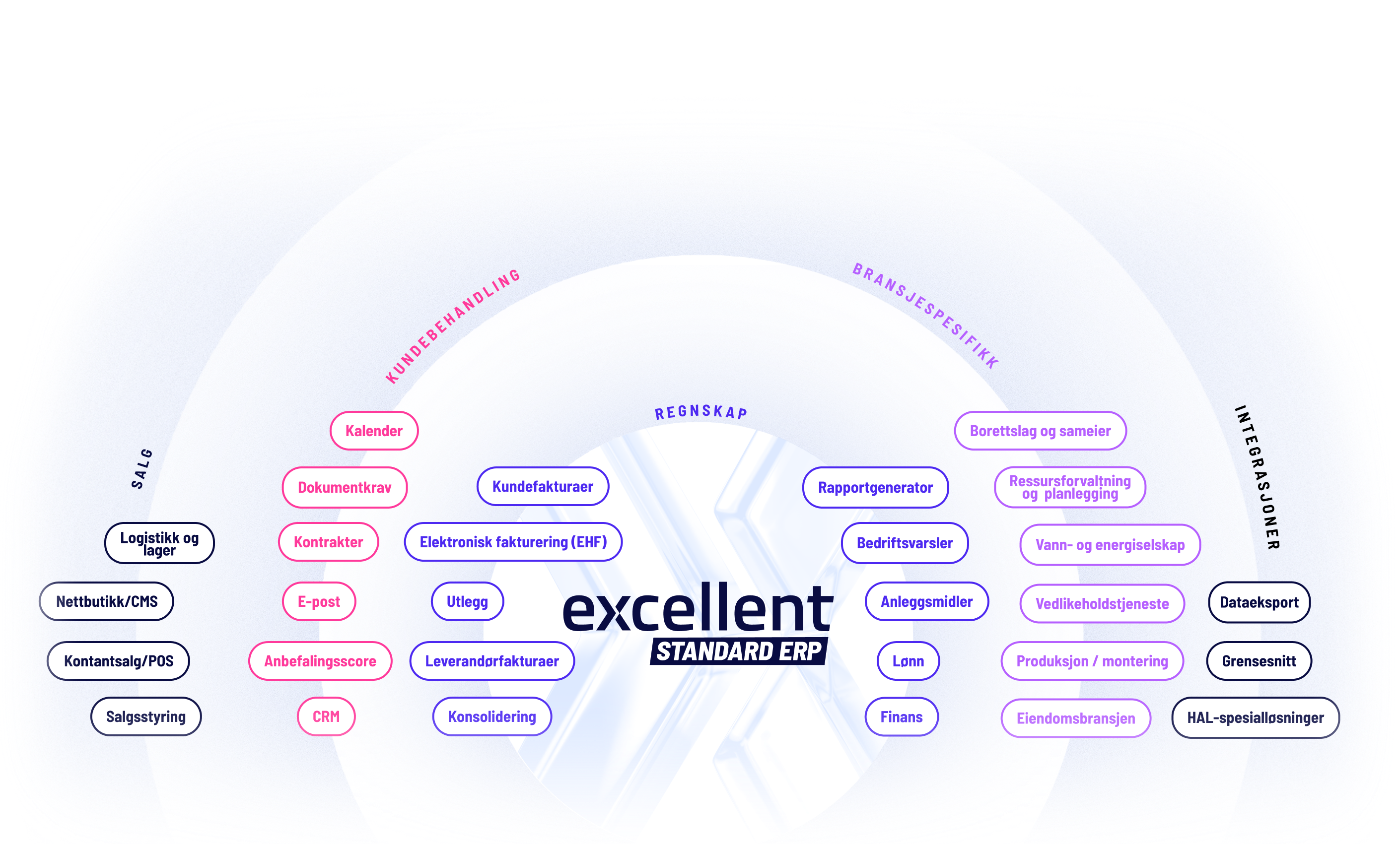 Excellent Books-programvaren tilbyr nesten 30 forskjellige moduler som støtter bedriftens daglige drift effektivt og pålitelig.